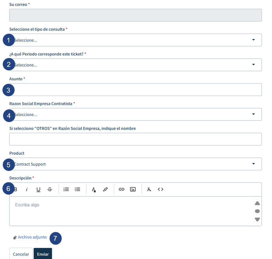 - Si tienes captura de pantalla, documentos u otros archivos que respalden tu solicitud, puedes adjuntarlos en esta sección.