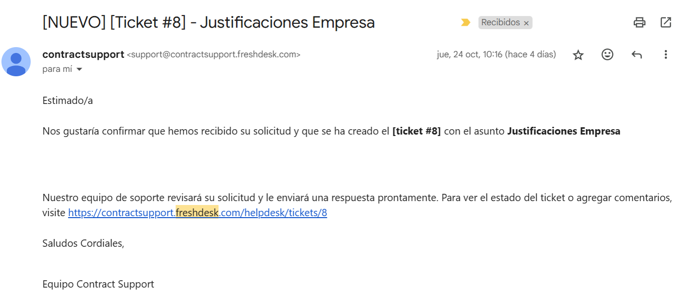 Recibirás una confirmación de que el ticket ha sido creado exitosamente, y podrás ver su número de seguimiento.